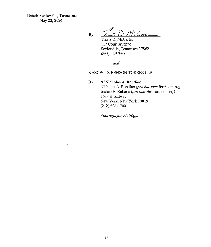 SEVIERVILLE, TN - At 1:30 p.m. today, Kasowitz Benson Torres filed a case on behalf of KARS, RH1 and Rocky Top against Ronald Ogle, Betty Ogle, Lynn Webb, Daniel Webb, Whaley Properties and LD&S, arising from their predatory and unfair actions to obstruct the development of a commercial business property at 750 Dolly Parton Parkway in Sevierville.